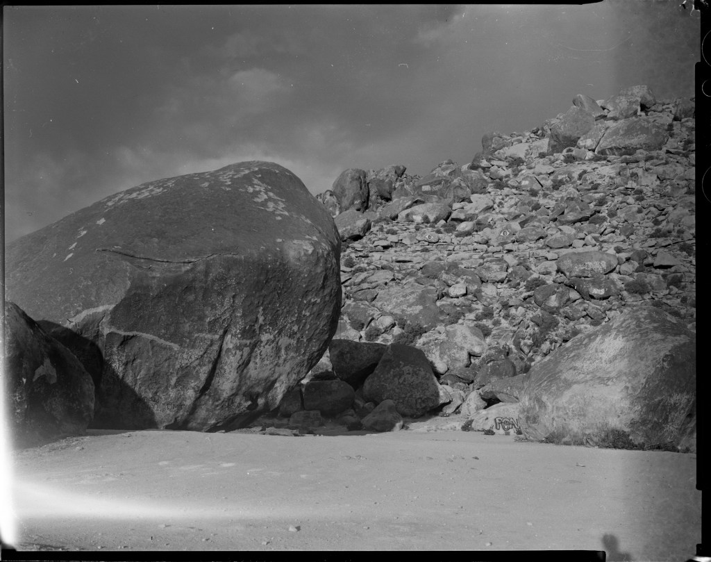 Due to the inherent physical nature of analogue film, failed attempts often yield products of great interest. Objects that speak of a chemical reactive process dancing across a substrate. Objects that speak to the research and development of one’s practice, gradually honing in on perfecting “the dance” of large format photography.
